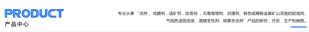 ? 公司專業從事 “溶劑, 成膜劑,選礦劑,定香劑 ,無毒增塑劑、潤滑劑、有色或稀有金屬礦山浮選的起泡劑、氣相色譜固定液、酒精變性劑、噴霧殺蟲劑”產品的研究,開發,生產和銷售。